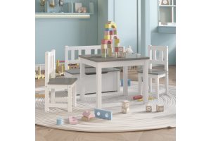 4-osainen Lasten pöytä ja tuolisarja valkoinen ja harmaa MDF – Valkoinen